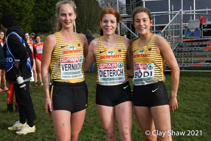 Nadia Battocletti of Italy moved up to the U23 and won in 20:32. Battocletti was champion of the Euro XC U20 race in Tilburg (2018), and Lisbon (2019). Team Italy won the team championship, as well, with strong performances by Anna Arnaudo (6th, 20:55) and Giovanna Selva (11th, 21:19).