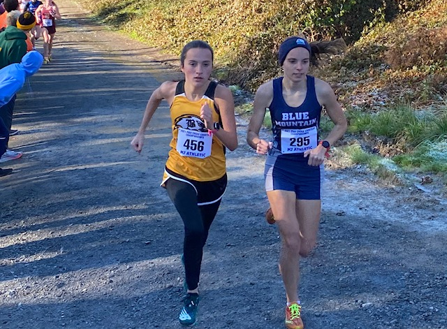The AA girls 5,000-meter final matched the winner of the 2021 Paul Short meet, Olivia Haas from District 11’s Blue Mountain High School, against Brownsville junior Jolena Quarzo. Quarzo had run a super fast 17:17 in early October at the Great American XC meet in Cary, North Carolina. For her part, Haas, the North Carolina State signee, ran 17:34 to win at Lehigh.