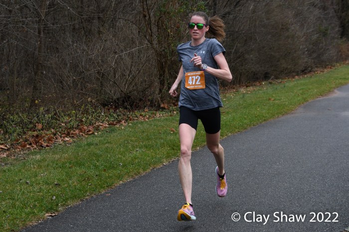John Rudy Park, York, PA, January 2, 2022—York Road Runners Club’s Winter Series Race #4 was held near Emigsville, PA. The Rudy Park 5 Miler started at the northern terminus of the York Heritage Rail Trail. It was an unusual 61 degrees for the January 2nd race.