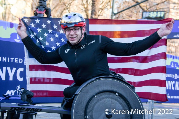 Daniel Romanchuk of Mount Airy, MD (49:22), and Manuela Schar of Switzerland (56:12) were the elite wheelchair champions.