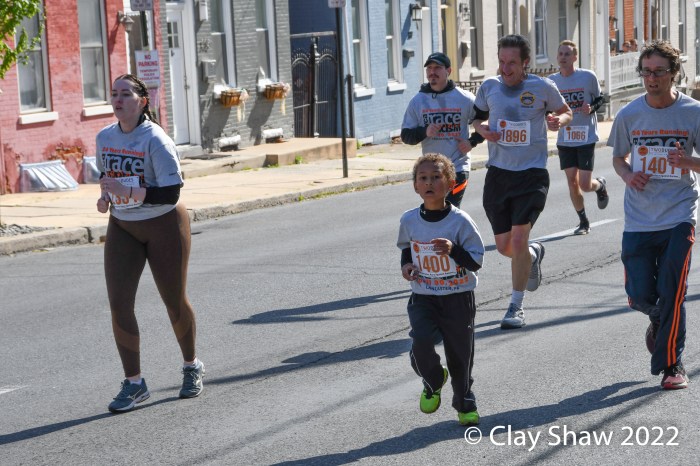 YWCA Race Against Racism 5K, Lancaster, PA, April 30, 2022—It’s been almost three full years since a big race took place in Downtown Lancaster, Pennsylvania. The YWCA Race Against Racism 5K returned to the city streets in a big way with over 2700 registrants. A very cool band, food trucks on Lime Street, vendors in Musser Park, and great running weather made the RAR return a joyful event.