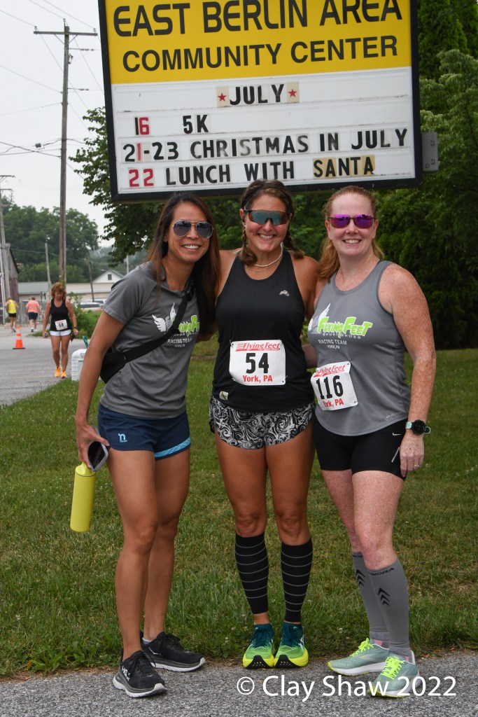 Bryanna Urban of Lititz won in 18:16, with only four teenage boys finishing ahead of her. Kristin Snyder of New Cumberland was second in 19:43. Chelsea Watson of Mt Holly Springs was third in 21:53. Kelly McKinley of York was top master and fourth in 22:12. Megan Dodson of York was fifth and second master in 22:41.