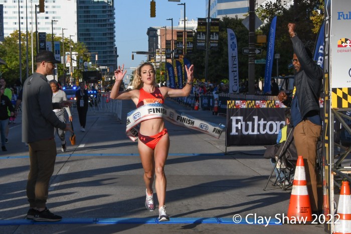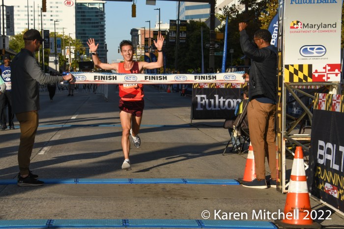 Baltimore, MD, Baltimore Running Festival, October 15, 2022—The Curio Wellness 5K started the Baltimore Running Festival at 7:30 am. Kasey Knevelbaard of Flagstaff, AZ won in 14:05. Willy Fink of Gaithersburg, MD was second in 14:07 and Festus Lagat of Gwynn Oak, MD was third in 14:13.
