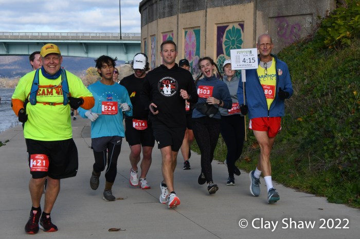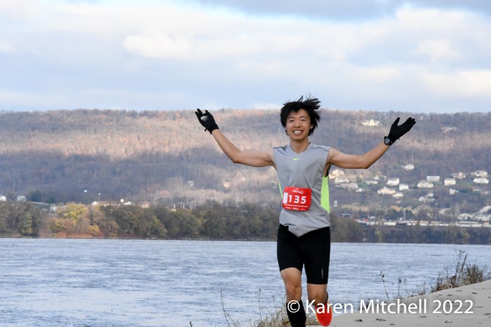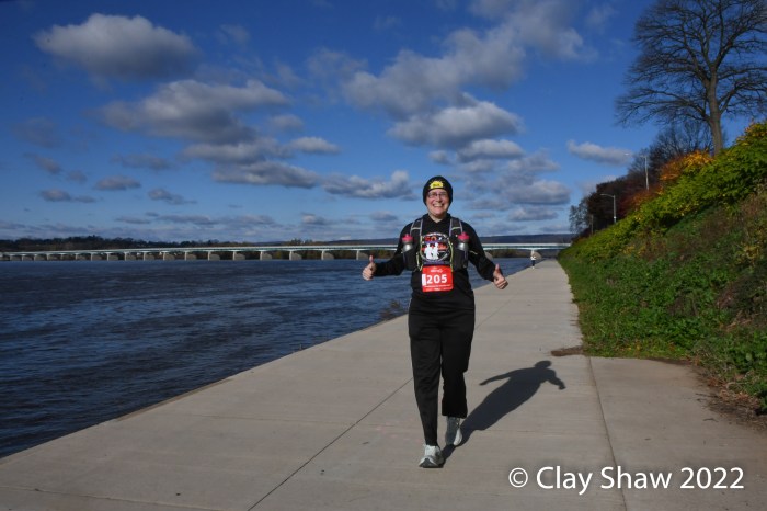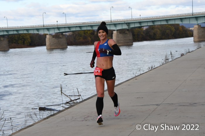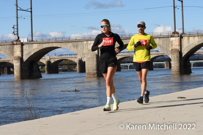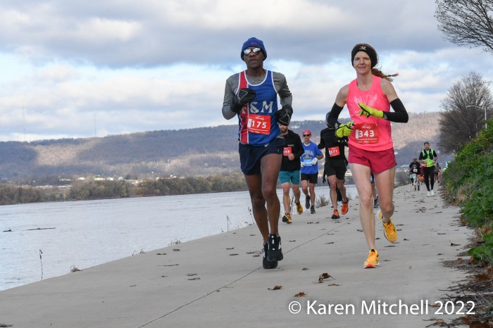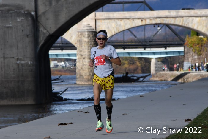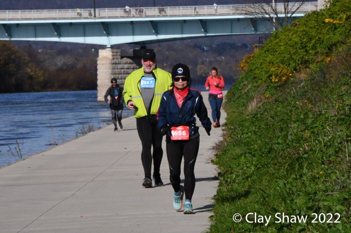 Harrisburg, PA, November 13 2022, 50th Harrisburg Marathon—The wind can be nasty in November. After a prolonged, warm autumn, including the day before the marathon, the northerlies came down with a vengeance along the Susquehanna River, battering the runners on several bridge crossings and elsewhere on the course.