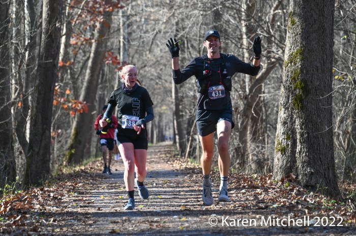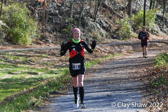 11.19.22 Hagerstown, MD, November 19, 2022, 60th JFK 50 Miler—Sarah Biehl of Columbus, OH ran a course record of 6:05:42. Biehl, who was runner-up in 2021, shattered the course record of 6:12:00 set by Ellie Greenwood in 2012. Caitriona Jennings of Ireland, who ran the Olympic Marathon in London, was second in 6:28:53. Jennings ran the #8 fastest women’s time at JFK and set a new masters record. Shea Aquilano of Carmel, IN, just 21, was third overall in 6:40:40. Natalie Sandoval of Phoenix, AZ was fourth in 6:43:00. Tara Dower of Wake Forest, NC was fourth in 6:48:32. Jana Fridrichova of Hagerstown was the top local finisher and tenth overall in 7:39:14. Fridrichova was the third master in the top ten.