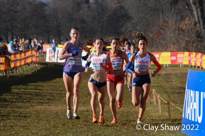 Turin, Italy, December 11, 2022, SPAR Euro Athletics XC Championships (Senior Women 7.662 KM)—Karoline Bjerkeli Grøvdal of Norway repeated as European Cross Country champion as she overcame a strong challenge by Germany’s Konstanze Klosterhalfen to win by four seconds in 26:25.