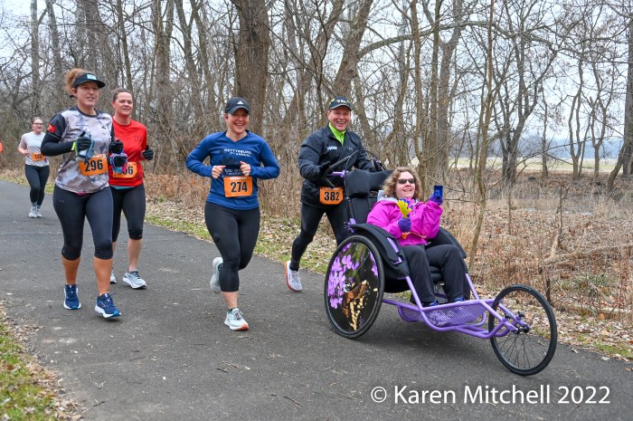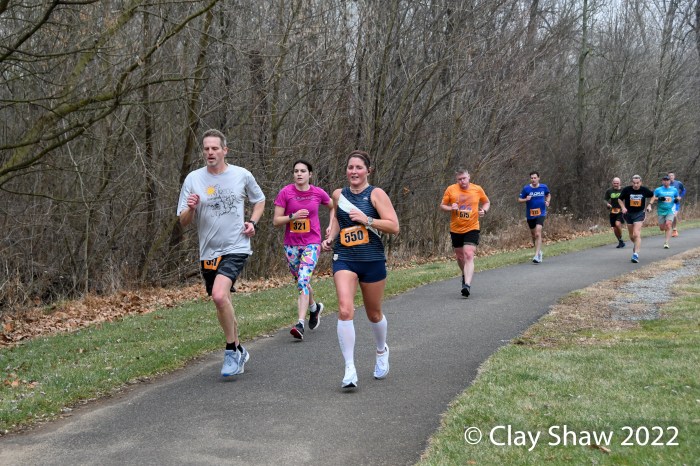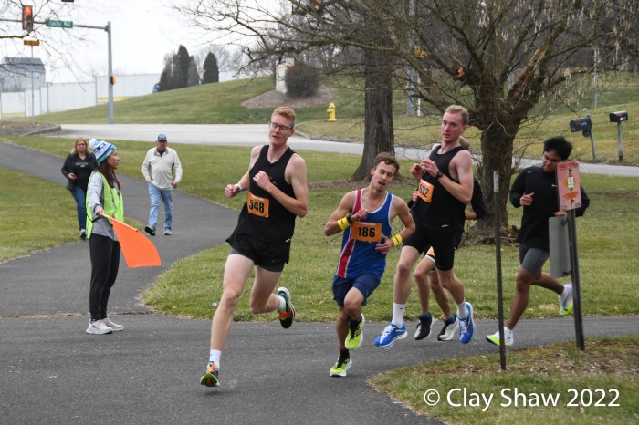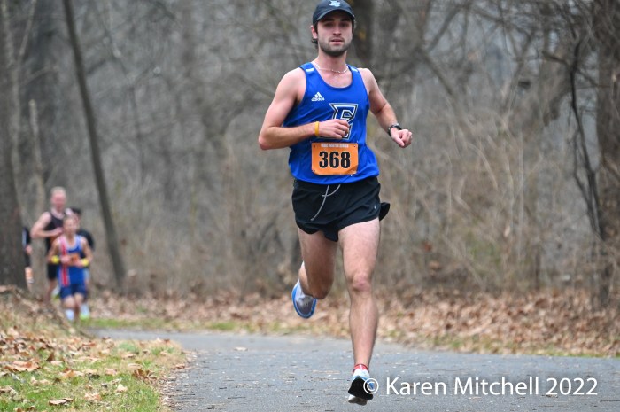 Andrew Pizzirusso of Wallingford, PA won again, taking his fourth straight York Winter Series race, in 27:35. Jeremiah “JT” Hetrick of Millersville was second in 27:58. Josiah McCarthy of Lancaster was third in 28:00. Isaac Covert of Shippensburg was fourth in 28:06. Dellas Edmisten III of York was fifth in 29:14. Runners 23 and younger took the top eight places. Master runners Andrew Hartman of Dover (30:43) and Eric Ferree of Seven Valleys (30:54) placed ninth and tenth.