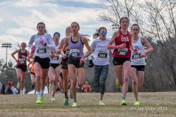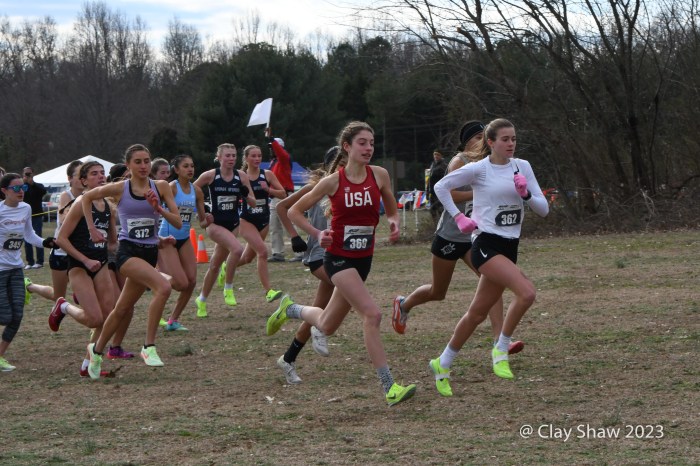 Mechanicsville, VA, January 21, 2023, USATF Cross Country Championships 2023 Richmond—Irene Riggs of Morgantown, WV led the way, as high school athletes dominated the U20 6K race at Pole Green Park in Mechanicsville, VA, just 12 miles from downtown Richmond. Riggs won in 19:44.3, and was followed by four more high school runners. Ellie Shea of Belmont, MA was second in 19:47.5; Zariel Macchia of Shirley, NY was third in 2:04.7; and Abbey Nechanicky of Wazata, MN was fourth in 20:06.6. Karrilynn Baloga of Cornwall, NY was fifth in 20:06.8.