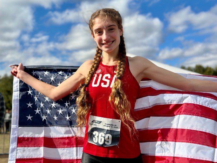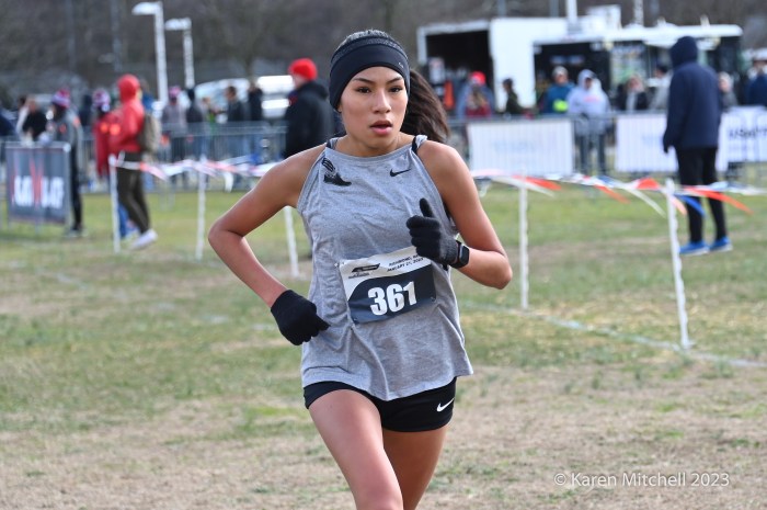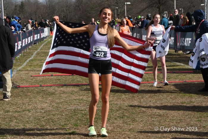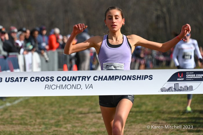 Zariel Macchia of Shirley, NY placed third in the USATF U20 Cross Country Championships. (Photo by Karen Mitchell)