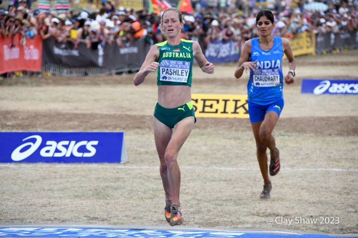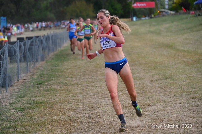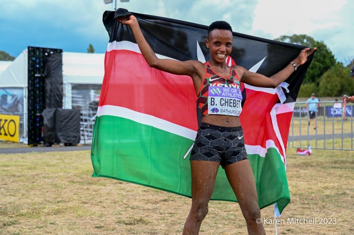 Bathurst, Australia, February 18, 2023, World Athletics Cross Country Championships Bathurst 23—Beatrice Chebet of Kenya was seemingly resigned to a second-place finish in the senior women’s 10K. (Note to readers: ‘Senior’ is a term widely used around the world to denote racers over 20-years-old.) Beatrice, who is 22, won in 33:48 on the difficult, hot and dusty course at Mount Panorama Motor Racing Circuit.