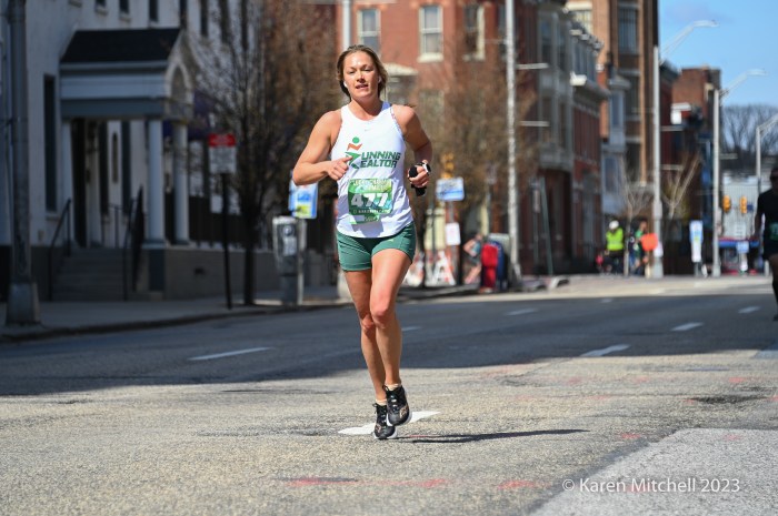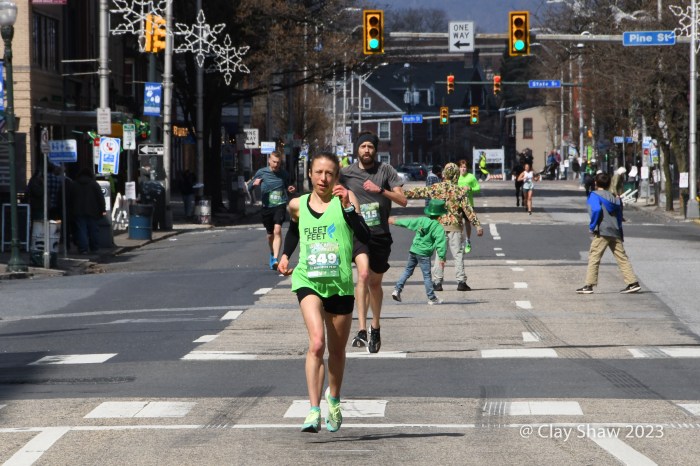 Harrisburg, PA, March 18, 2023, Lucky Charm 4 Miler—Zoë Matherne of Philadelphia won the Lucky Charm 4 Miler in Harrisburg. Matherne won the 2022 event and repeated as champion with a time of 24:09. Teal Liu of Hershey was second in 25:03. Lindsay Pridgen of Harrisburg was third in 25:44. Emily Nelson of Mechanicsburg was fourth in 26:40. Whitney Mayer of Hummelstown was ninth overall and top master in 28:45.