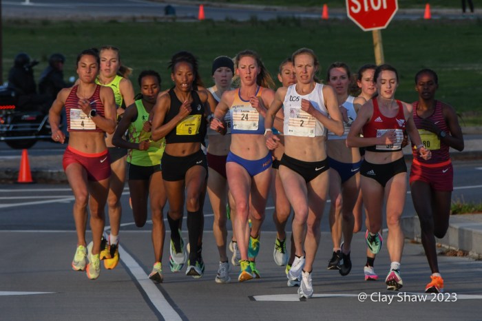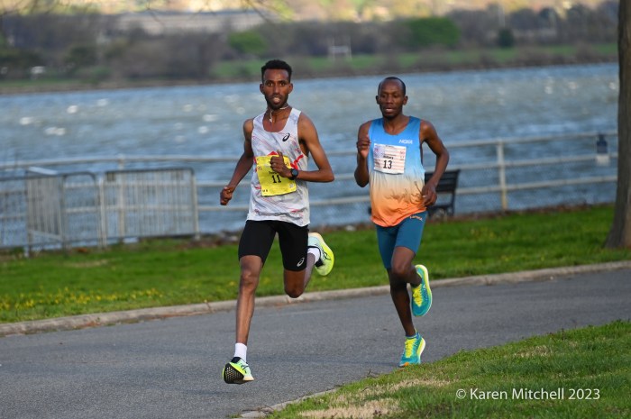 Tsegay Kidanu of Ethiopia, just 21-years-old, won the CUCB in 46:08. His race wasn’t as lonely as Chelangat’s, as Hillary Bor of the USA was fighting all the way for the win, the USATF championships, and the American record. Kidanu got the overall win, and Bor is now the 2023 USATF 10-mile champion and new the USA record holder as well, pending USATF ratification. He earned a $50,000 bonus in addition to $4000 for second place overall, and $5000 for first American. Bor’s pay day was $59,000 in total.