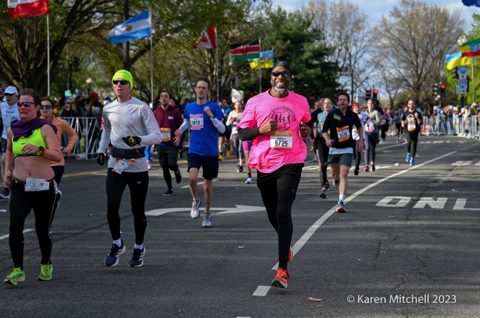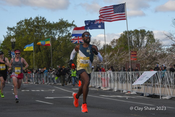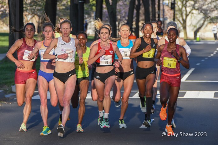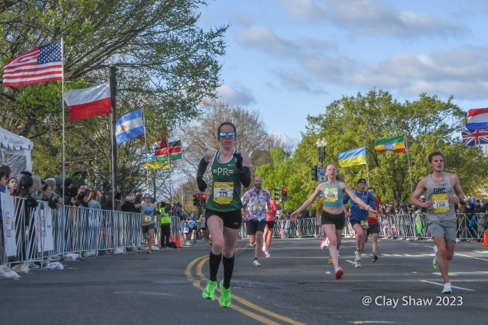 On Saturday, a speaker’s program was hosted in the National Building Museum, where an expo and packet pick-up were held. The program was moderated by Runner’s Gazette’s George Banker. The speaker’s program included Running While Black author Alison Mariella Desir, plus black athletes Alisa Harvey, Marilyn Bevans, Delabian Thurston, and Bill Sollers. Another program included past CUCB champions Kathrine Switzer, Colleen de Reuck, Lisa Rainsberger, Greg Meyer,and Bill Rodgers, as well as Roger Robinson and former Cherry Blossom 10 Miler race directors Jeff Darman and Ed Murray.