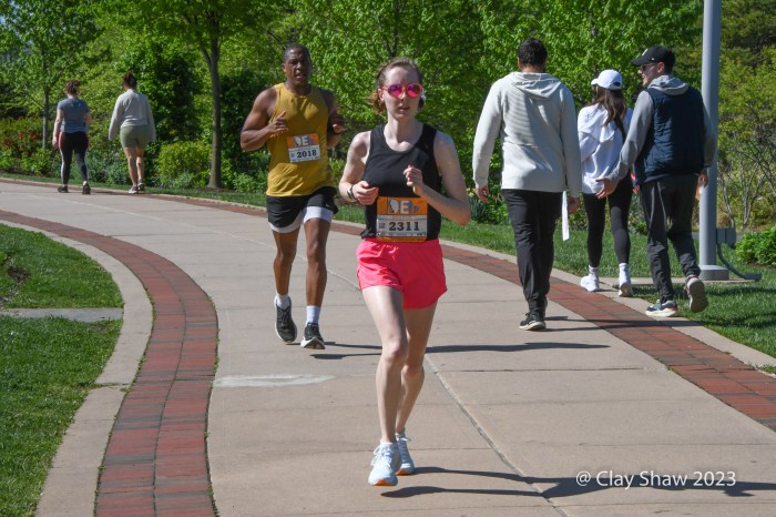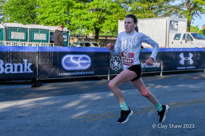 Brittany Ann Cool of Wilmington (45:26) and Julian Jones (36:35) were the overall winners of the 10k. Kaitlin Kipp of Avondale, PA (19:40), and Dashiell Rogers of West Point, NY (17:17) were tops in the 5K. The Delaware Running Festival drew 1634 runners across the four finish lines. The distance races had the most with 454 in the marathon and 736 in the half marathon. The 10k just outdrew the 5k, 228 to 226.