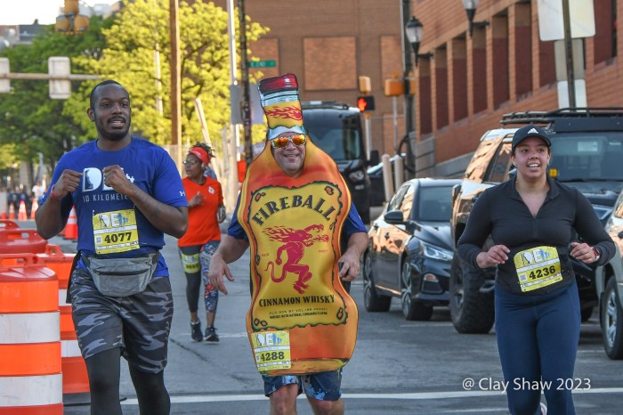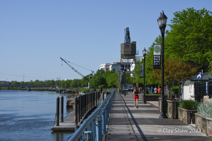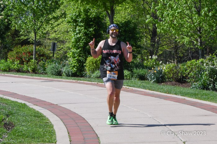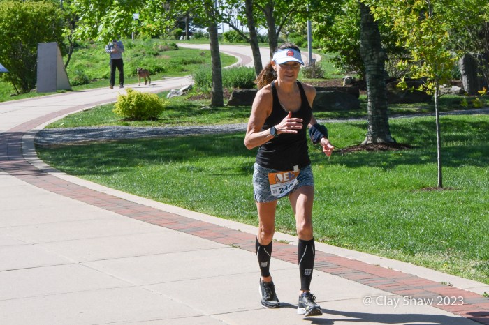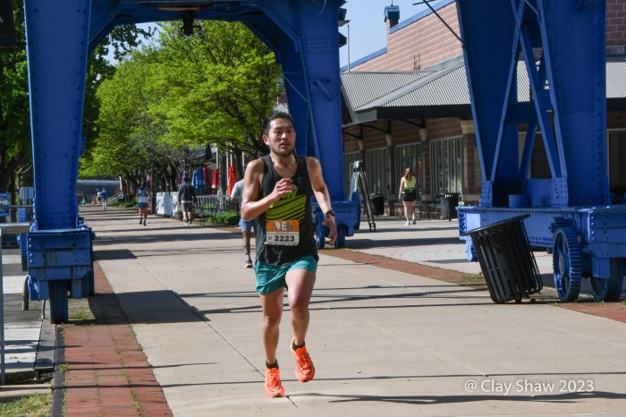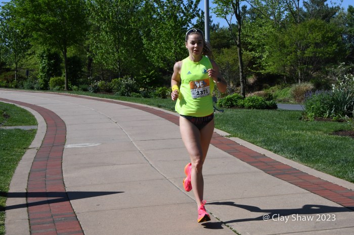Courtney Mann of Ellicott City, MD was second in 3:19:56. Svetlana Volkova of Sertolovo, Russia was third in 3:24:03. In the men’s race Wyatt Schug of Charlottesville, VA was second in 2:44:57. Ryan Fan of Baltimore was third in 2:46:51. Brian Blankmeyer of Downingtown, PA was top master and eighth overall in 2:57:15. The first half of the marathon and all the shorter races toured downtown Wilmington and city parks. The second half of the marathon, the “full” as some people like to call it, travelled out and back on the Wilmington Waterfront and Jack Markell Trail to New Castle, Delaware.