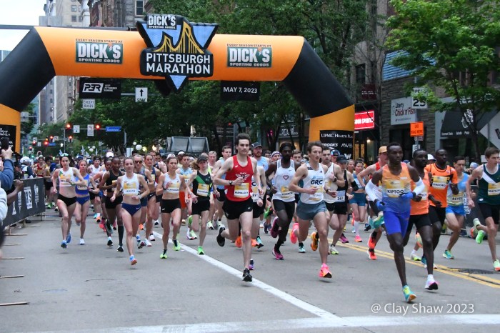 The Sunday races, the Dick’s Sporting Goods Pittsburgh Marathon and the UPMC Health Plan Pittsburgh Half Marathon, had over 20,000 participants.