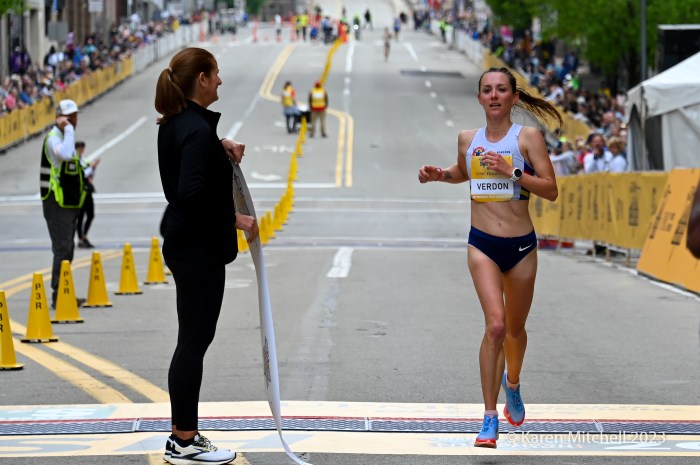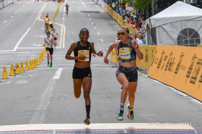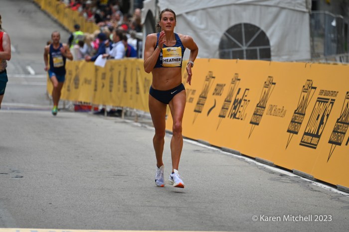 Neely Spence of Lafayette, CO gets the call for fourth in battle with Caroline Rotich of Kenya, the 2022 champ.