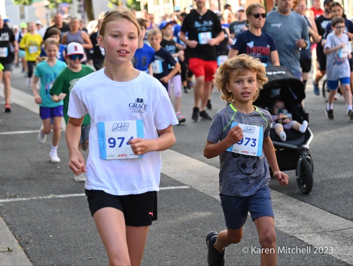 Tyler Muse of Salisbury, MD won in 15:27. Sam Brosh of Bel Air was second in 15:50. Hayden Schindler of Baltimore was third in 15:55. Brian Yeager of Bel Air was top master in 17:42, and he’s 50.