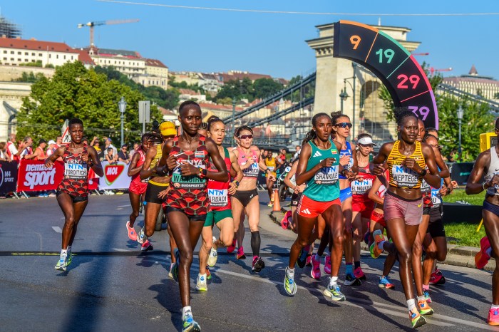 August 26, 2023, Budapest, Hungary, World Championships Marathon—I had been to Budapest twice before, and was really hoping to be there in person in 2023. But, things didn’t workout as hoped. The next best thing was to watch live on CNBC at 1 AM and hear Kara Goucher’s thoughtful expertise. The coverage was awesome and featured extended coverage of the finish and looks back to secondary packs. The scenery of Budapest was quite the star of the show, too: the start and finish at Heroes’ Square, the long straightaway on Andrassy Avenue, the Opera House (with performers), the St Istvan Basilica (St Stephen’s), the Szechenyi Bridge or Chain Bridge, and through a tunnel on the Buda side of the Danube under Castle Hill. The runners competed on the 10k loop with a short 2.195 km extension (good for TV and the athletes to check out what’s going on behind or ahead of them).