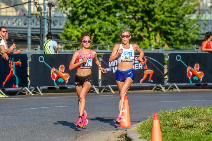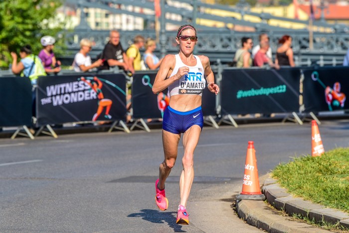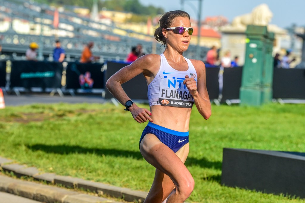 While the rest of the field caught Sullivan after 10k, the pace was conservative. USA’s Keira D’Amato of Midlothian, VA, led the large group of athletes through the halfway split in 1:14:30. Keira recently set a new USA half-marathon record of 1:06:39 at the Gold Coast Half Marathon in Australia. Like Sullivan, D’Amato experienced hip flexor and other issues. She worked through the issues to finish 17th in 2:31:15.