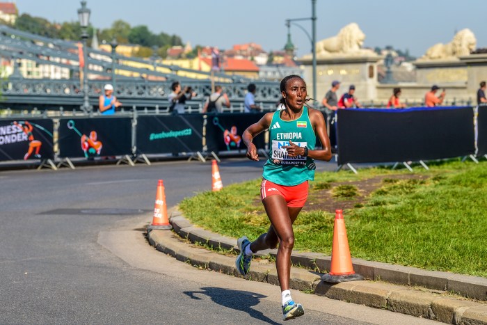 Behind them Yehualaw was fading, and there would be no Ethiopian sweep. Fatima Gardadi of Morocco, who was charging with great mindful form and strength, passed Yehualaw and earned the bronze medal in 2:25:17, a first for Morocco in the women’s marathon. Gardadi, running strong, had to hold off 2022 bronze medalist Lonah Salpeter of Israel, who placed a solid fourth in 2:25:38. Yehualaw, was at one point flailing her arms to try anything to keep herself going, and did place fifth in 2:26:13.