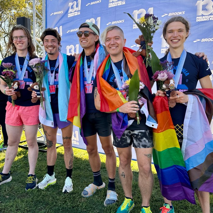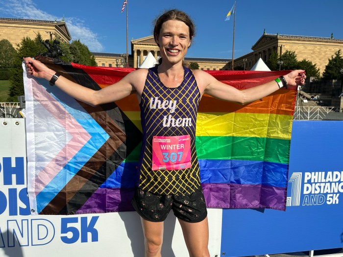 Winter Parts of State College won the non-binary group in 1:12:50. Josh Fernandez of Philadelphia was second in 1:17:46, just ahead of Will Newman of Philadelphia, who ran 1:17:50. Cal Calamia of San Francisco was fourth in 1:20:00.