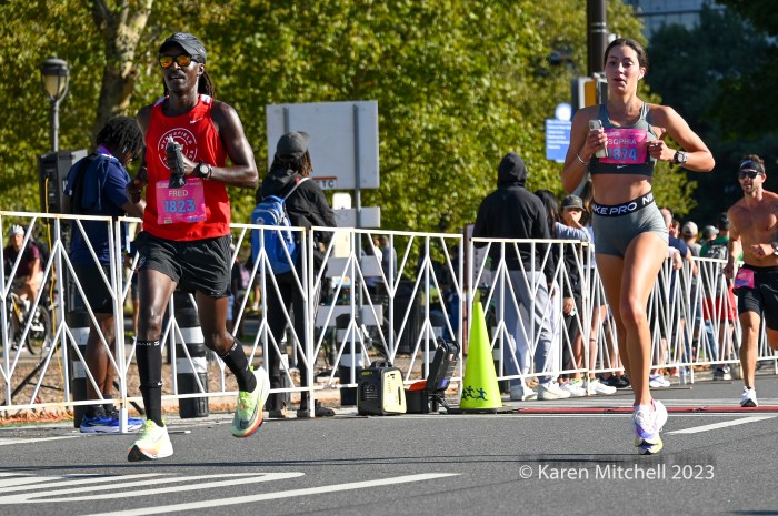 Herman Garic of Utica, NY was the wheelchair champ in 48:15. James Senbeta of Chicago finished in 50:00 and first non-binary, Tony Nogueira, 55, of Glen Ridge, NJ was top master. Hannah Babalola was the top female; she’s from Nigeria.