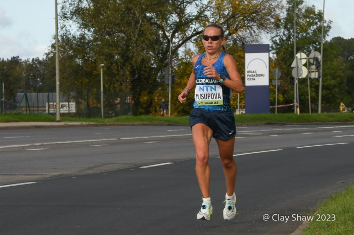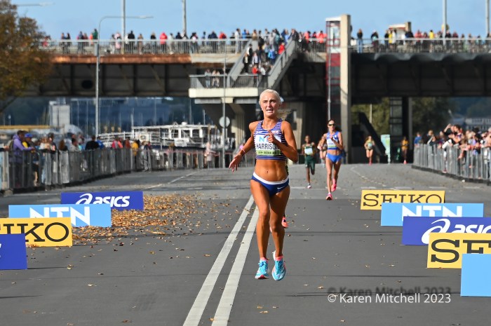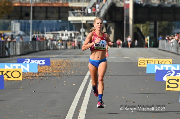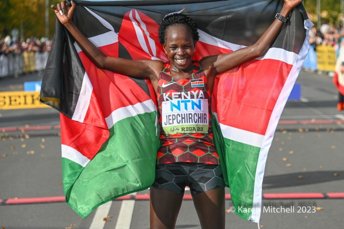 10.1.23, Riga, Latvia, World Athletics Road Championships—World Athletics introduced two new distances and added them to the half marathon championships, which were last held in Gdynia, Poland in October 2020. While the new races had new world records (the road mile), and the 5k had their first champions, Peres Jepchirchir of Kenya became a three-time champion with a 1:07:25 victory. The Kenyan women swept the medals with Margaret Kipkemboi finishing second in 1:07:26 and Catherine Reline Amanang’ole finishing third in 1:07:34. Peres had won in Gydnia 2020 and Cardiff (Wales) in 2016. Now Jepchirchir joins Tegla Laroupe and Paula Radcliffe as three-time champions. Tegla won in 1997 Kosice, 1998 Zurich, and 1999 Paermo. Paula’s victories came in 2000 in Veracruz, 2001 Bristol (we were there), and 2003 in Vilamoura.