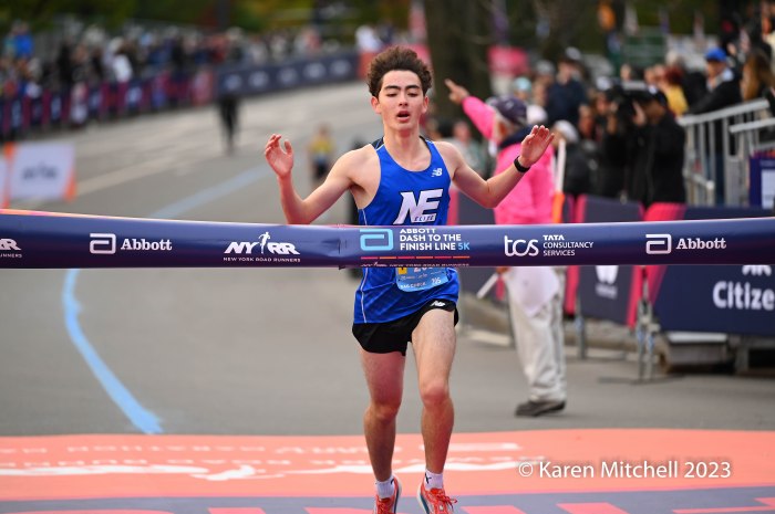 The USATF Youth 5K Championships were won by Zariel Macchia, 17, of Shirley, NY who ran 17:27. Zariel was on the USA U20 Bronze medal winning team in Bathurst, Australia in February. She was 19th overall at World XC Bathurst 2023. Patrick Noonan, 15, of Haverhill, MA topped the boys in 15:53. By the time all the racing had been completed from the UN Building to Central Park’s finish line, over 10,100 participants had finished.