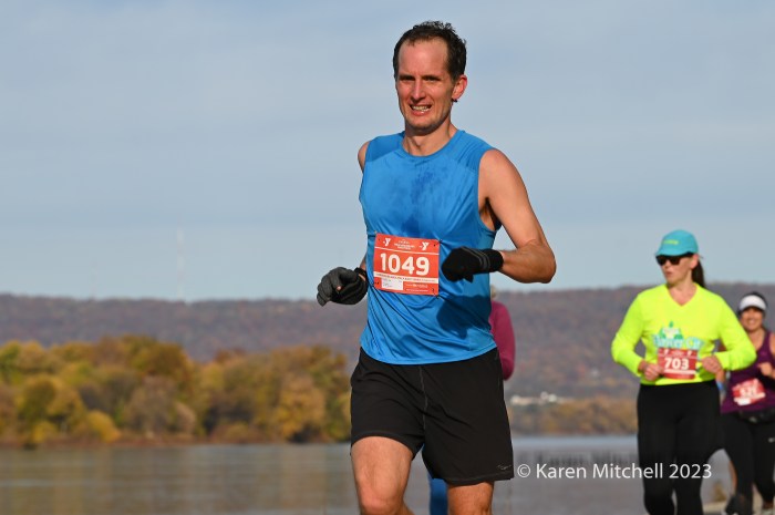 The half marathon, which had 276 finishers, was part of the Harrisburg Marathon event, which this year started 45 minutes after the marathon start. The overlap was less significant, as for the most part the marathoners and the half marathoners shared course space at different times.