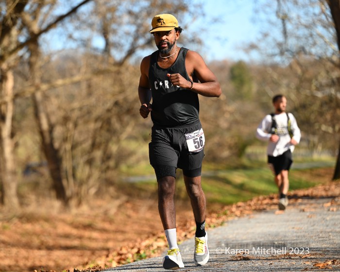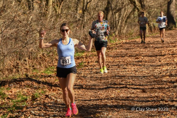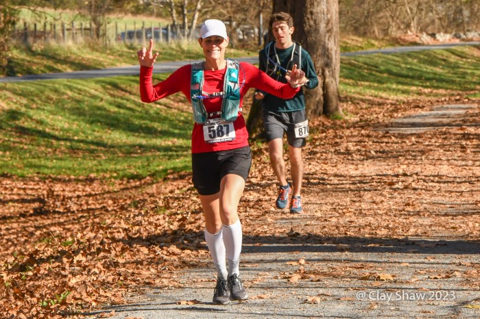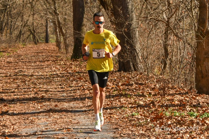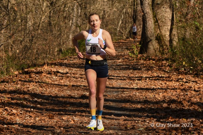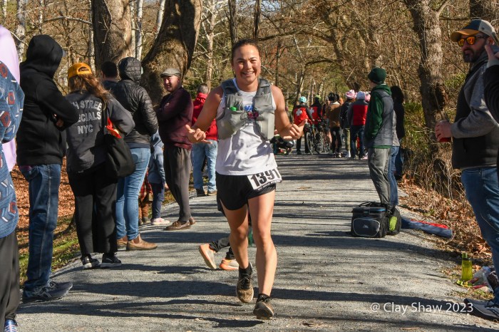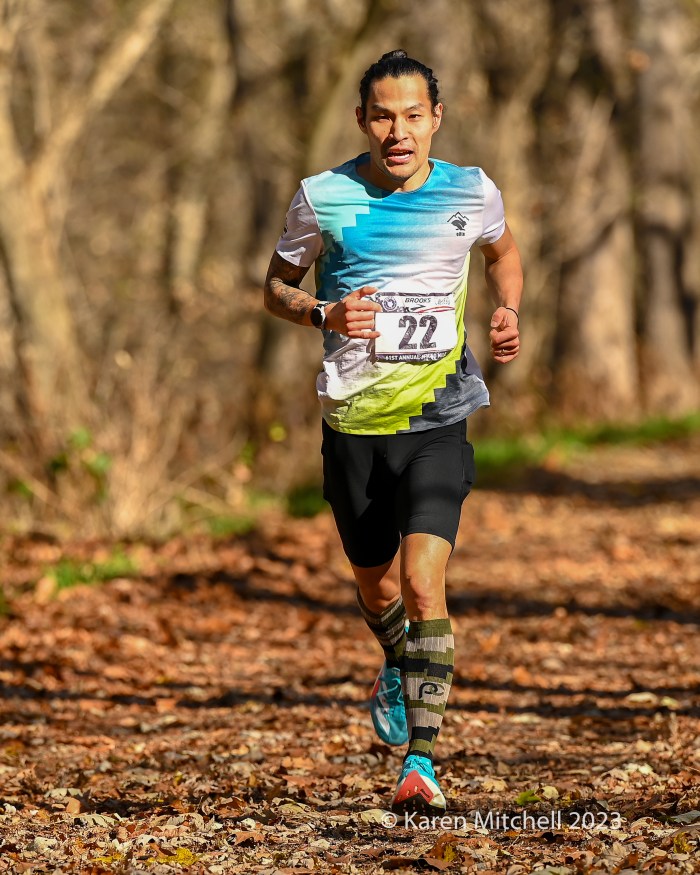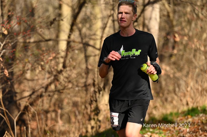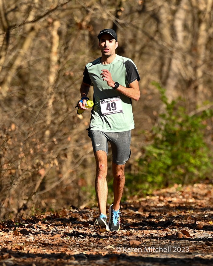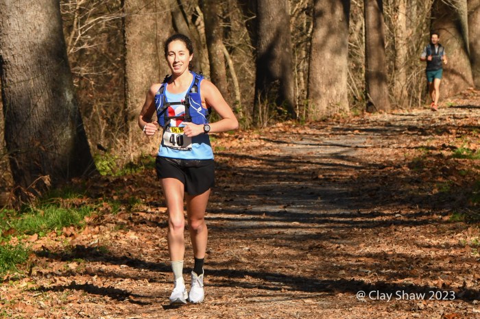 11.18.23 Boonsboro to Williamsport, MD—Seth Ruhling of Boulder, CO had his eye on the course record, but ended up with the win in 5:28:39. Ruhling won the 2019 JFK in his only other participation in the event. Ruhling is now #5 on the all-time list. Calum Neff of Katy, TX, a Canadian citizen, was second in 5:38:39. Neff had a DNF in his only other JFK wanted to set the record straight. Ryan Sullivan of Grand Junction, CO was third in 5:40:45. Jared Burdick of Fayetteville, NY was fourth in5:46:21. Geoffrey Burns of Colorado Springs, CO made it three for Colorado in the top five, in 5:55:02. The five were the only runners to break the six-hour mark in the 2023 JFK, in which 932 finished.