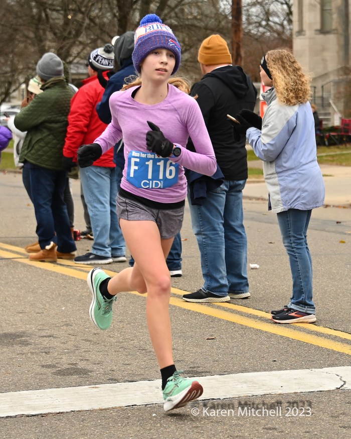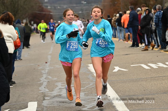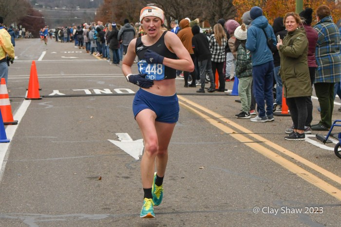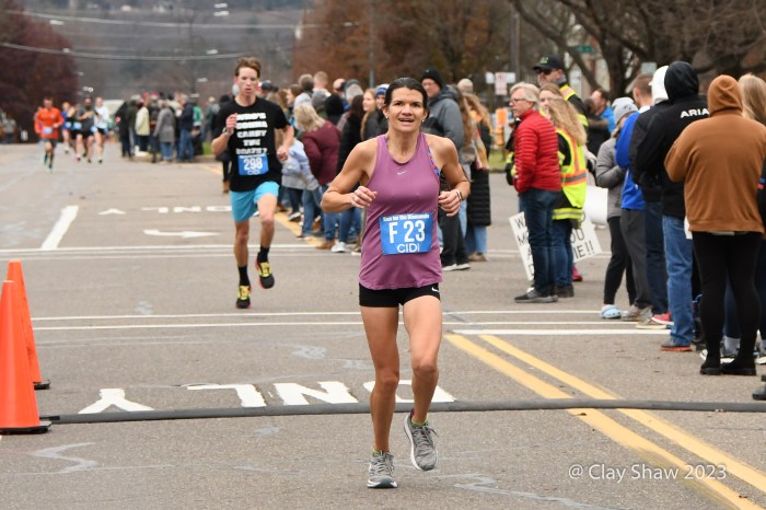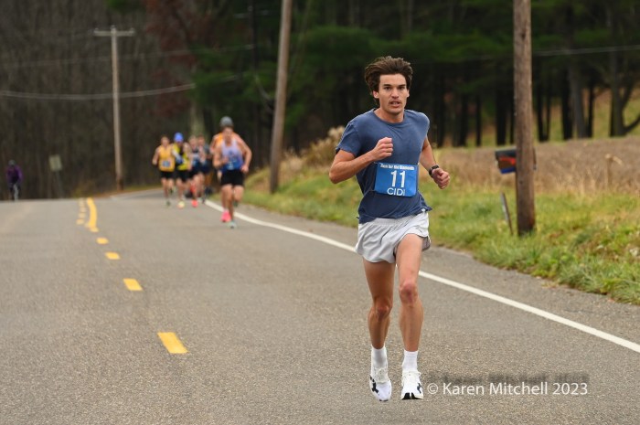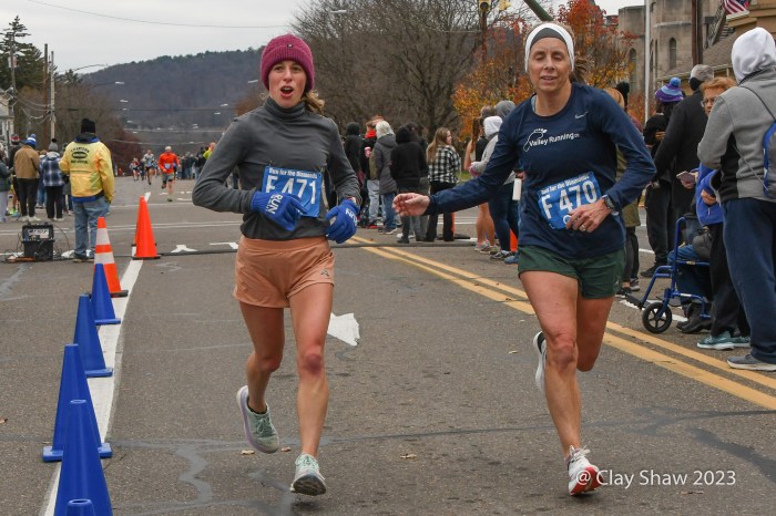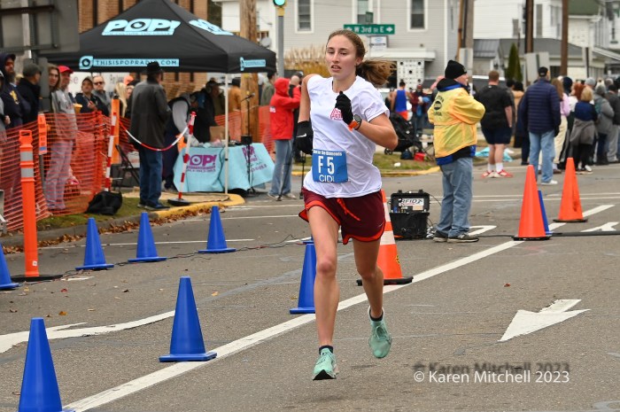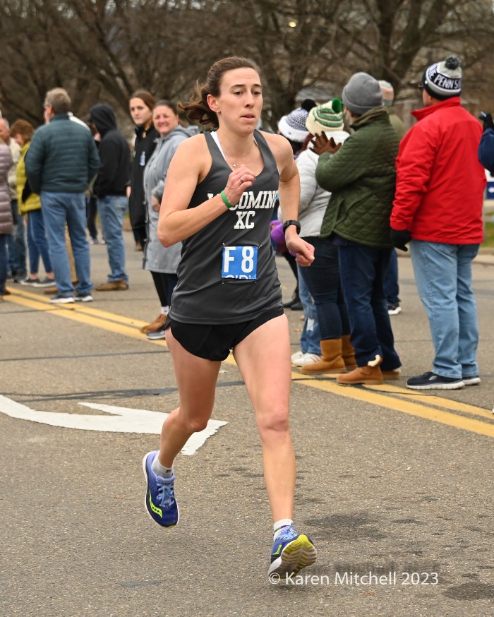 Zöe Matherne of Philadelphia won in 54:29 and had a comfortable, over a minute, margin. Carly Danoski was second in 55:39. Lacey Danilovitz of Moosic was third in 55:46. Marina Martino of Dallas, PA, the 2022 champ and three-time winner, was fourth in 56:03. Whitney Heydenreich of Danville was fifth in 57:07. Coyla Bartholomew of Danville was sixth in 57:32. Katie Sick of Danville was seventh in 57:56.