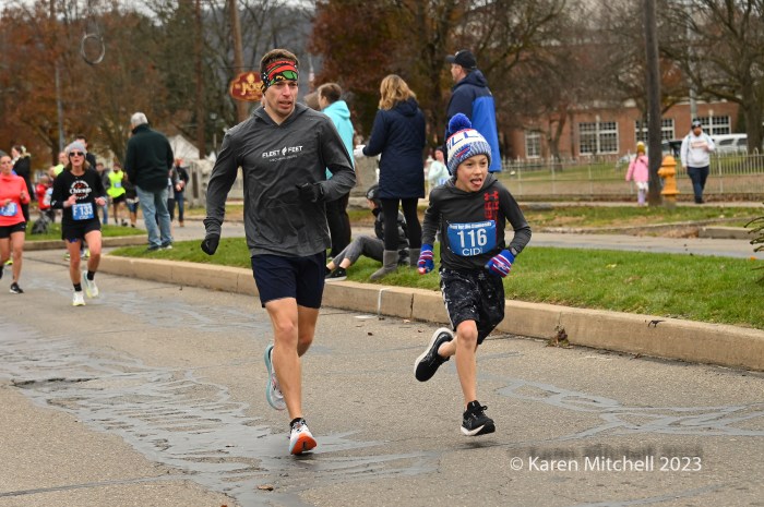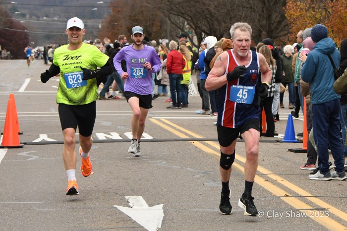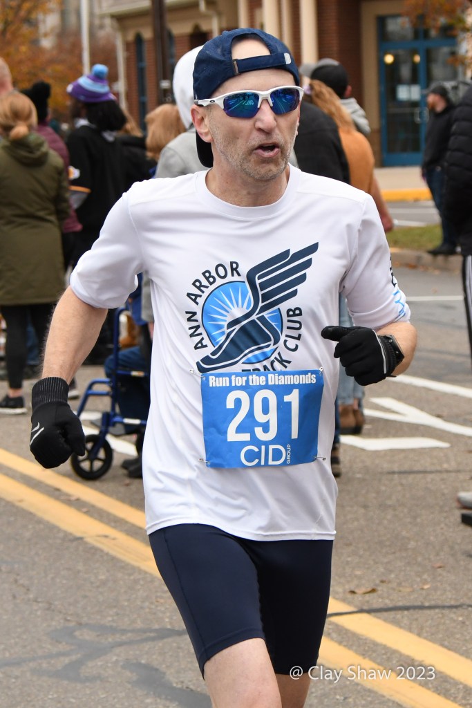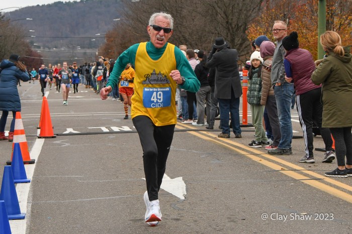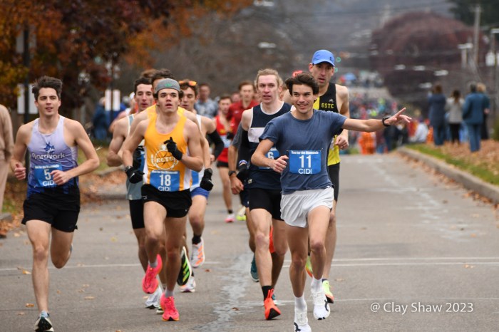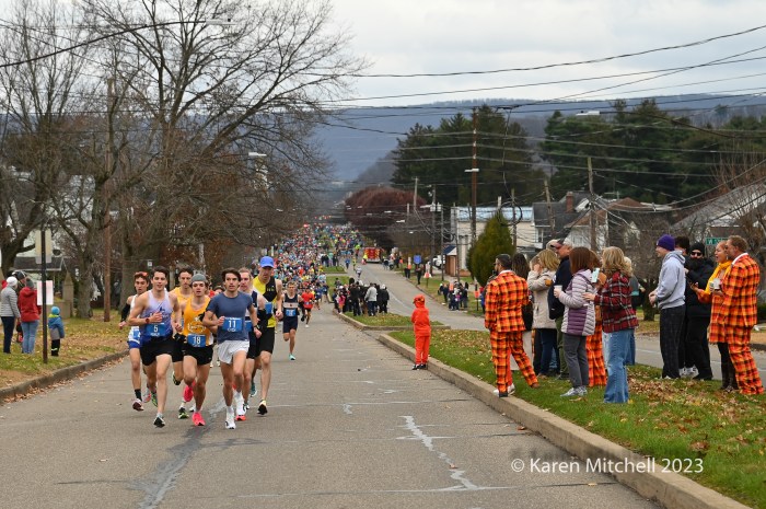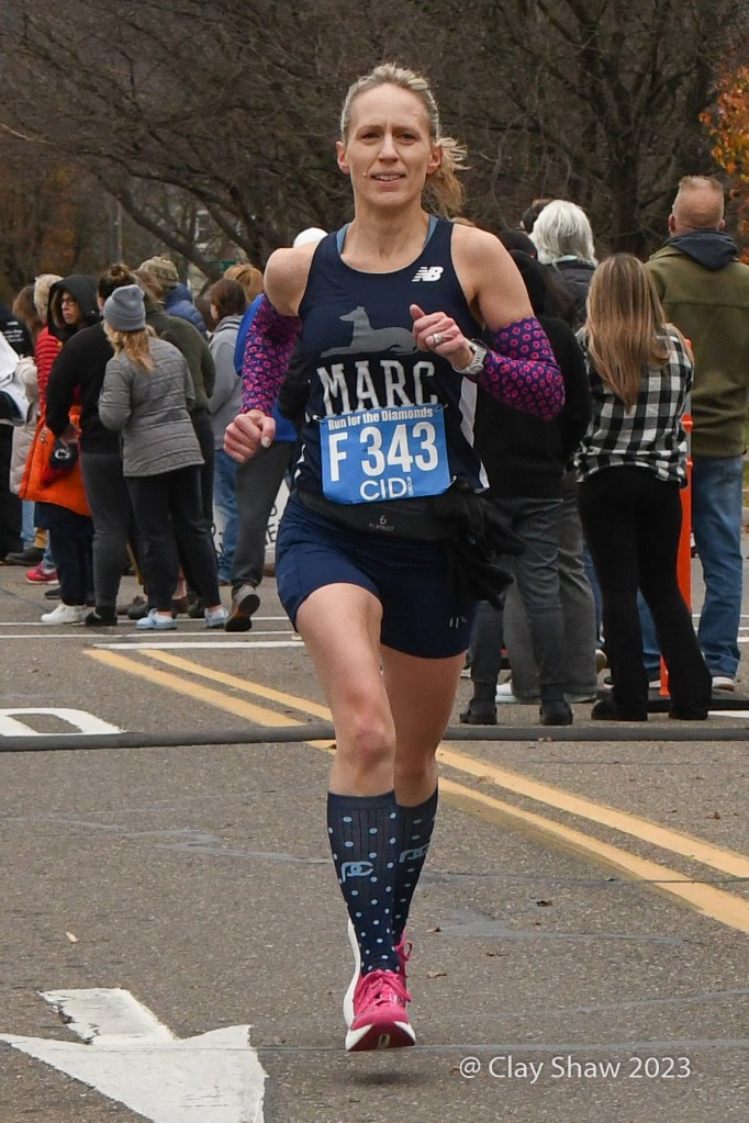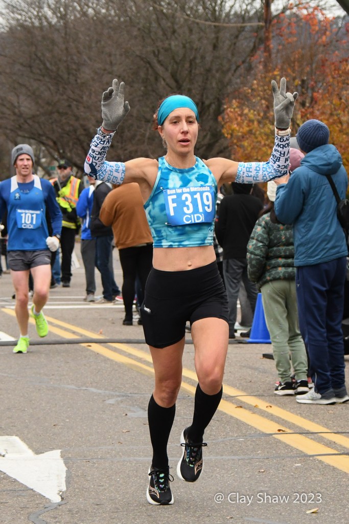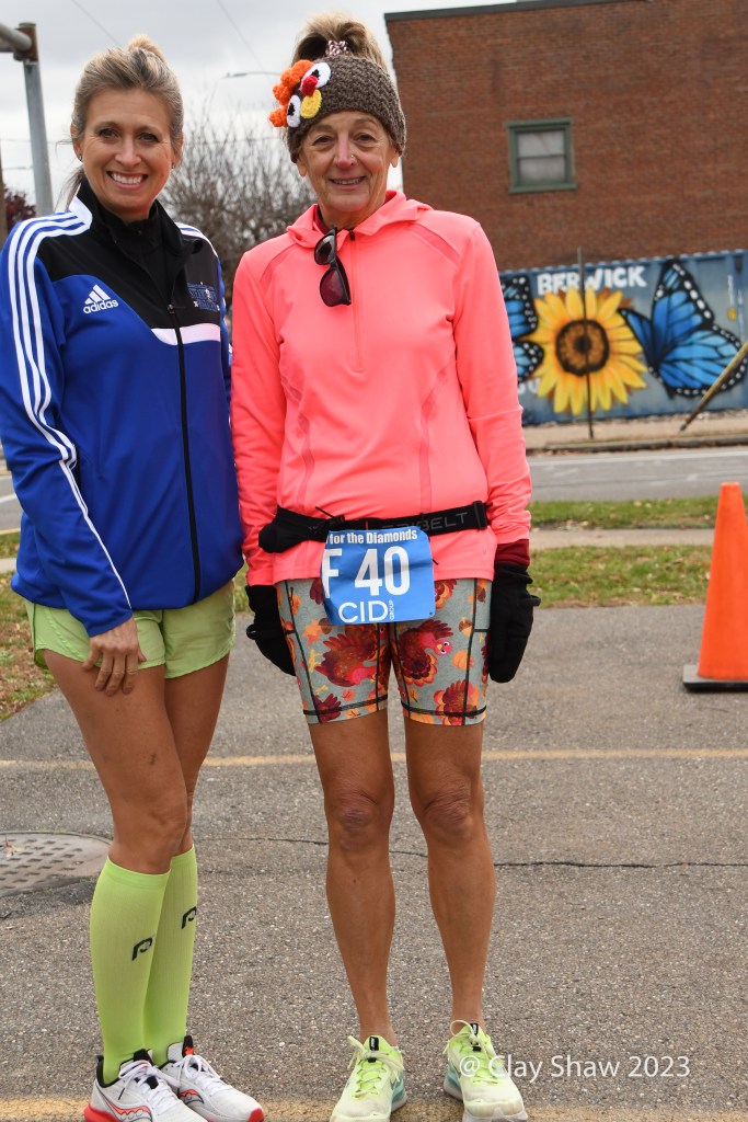It’s not easy by any means. The race is 9 miles (not a 5k) and has a massive 1.5-mile hill to the 5k mark and undulates the rest of the way. (As one of our social media followers said, “The fans and atmosphere are what makes this what it is (which is why we run that crazy hill every Thanksgiving!). Crowds line the course with pockets of big get-togethers and partying. The race, as its name indicates, awards diamonds to the top seven men and women and to ten-year age-group winners through age 70’s. Other age group and team awards are also awarded in this community-driven event. Locals and non-locals even bet on the runners.
