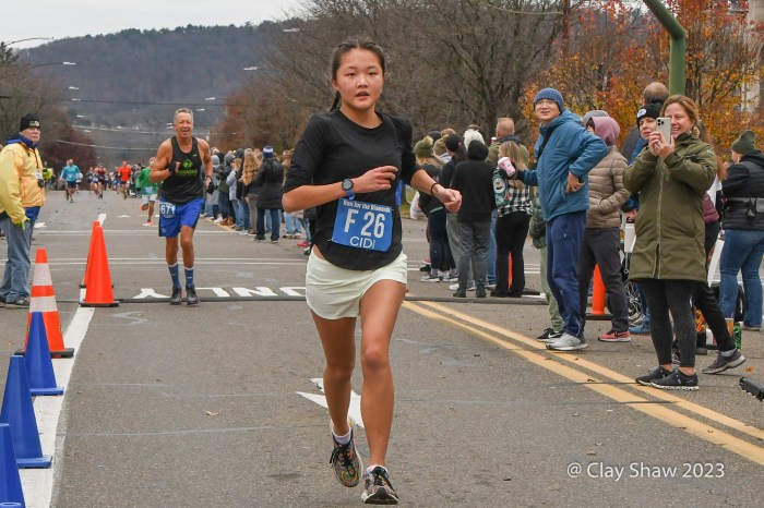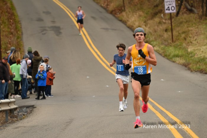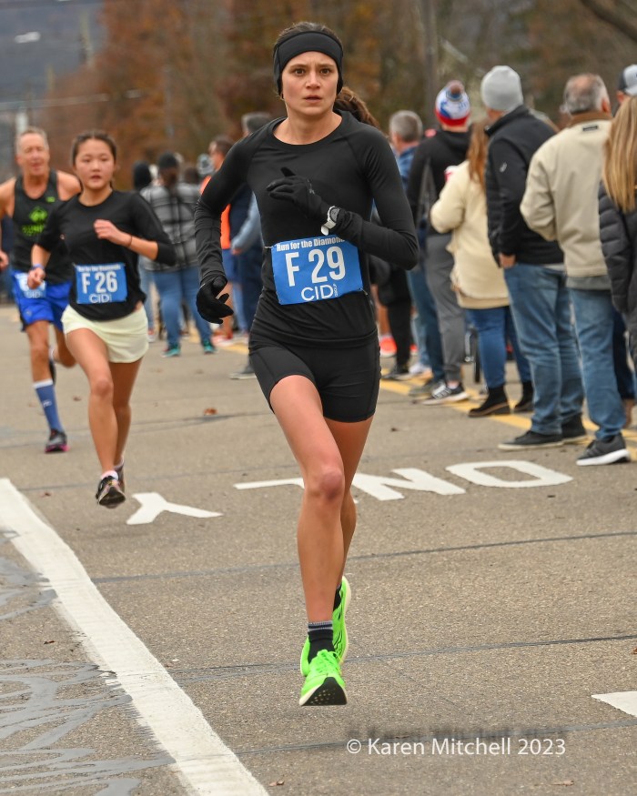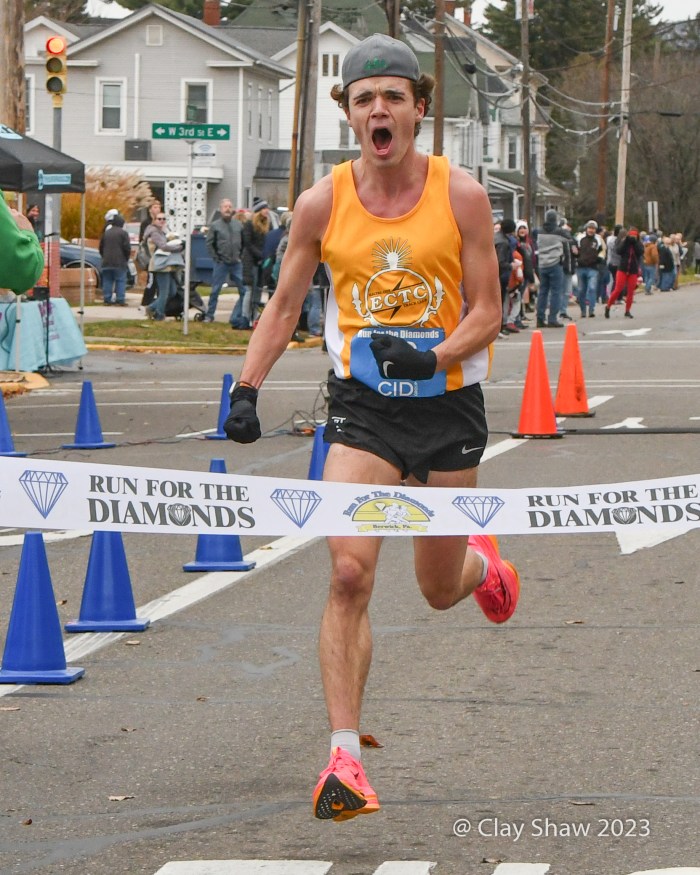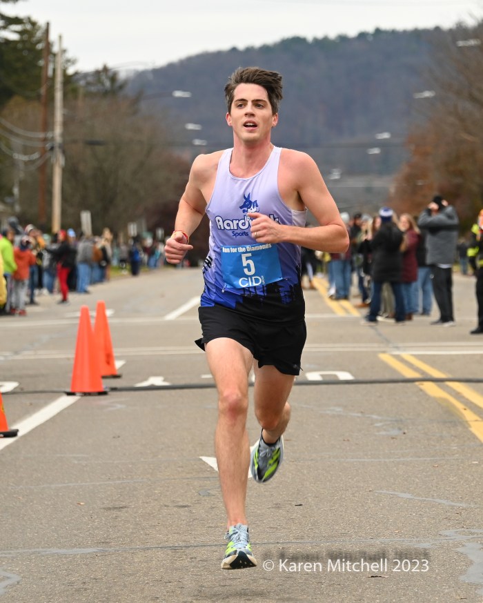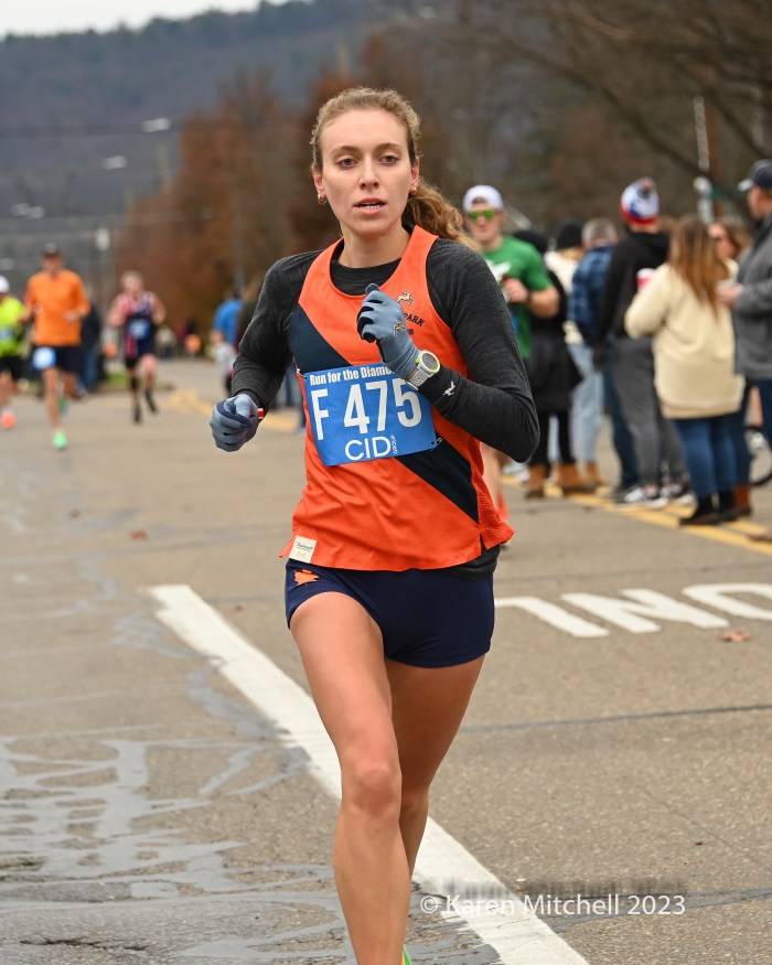 11.23.23 Berwick, Pa—Zöe Matherne of Philadelphia won the 2018 running, 55:06. This year she won her second Run for the Diamonds title, improving on her 2018 time with a 54:29. Cole Frank of Philadelphia, a Temple University runner, won his first in 44:47.