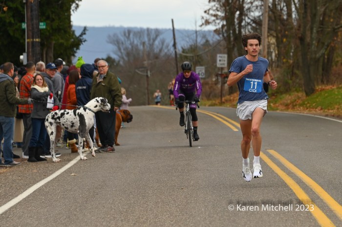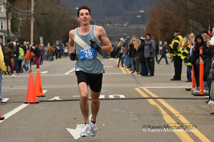 Christopher Wadas of Kingston, PA was top 40-49 master in 50:56 and 21st overall. Stephen Housenick of Kingston, PA was tops in the fifties in 1:00:40. Tim Schuler of Lititz, now 60, won in 58:21. Fernando Moura of Douglassville, PA earned the 70’s prizes in 1:07:09.