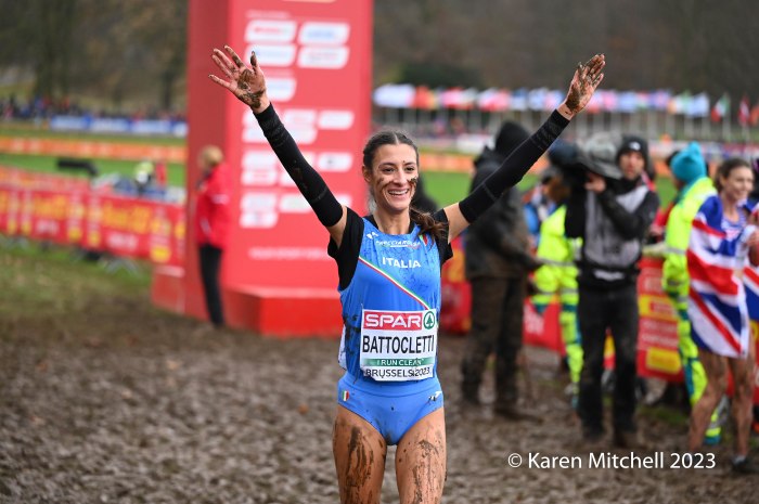 In her senior race debut Nadia Battocletti of Italy earned silver in 34:25. Abbie Donnelly of Great Britain was third in 34:42. Fionnuala McCormack of Ireland, the 2011 and 2012 Euro XC champion, was fourth in 35:00. McCormack was running in her record-setting 18th Euro XC event. Jessica Warner-Judd of Great Britain was fifth in 35:20. Great Britain won the team title, with Spain and Belgium earning podium spots.
