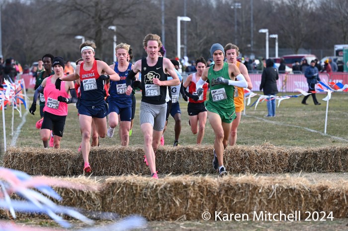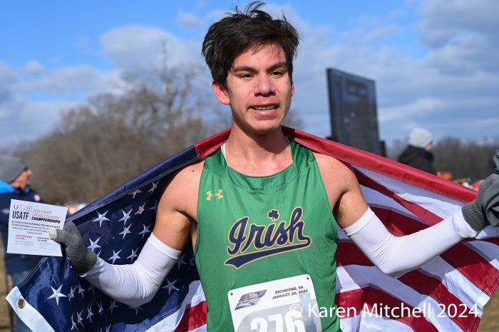 1.20.2024 Mechanicsville, VA, 2024 USATF National Cross Country Men’s U20 Championships—Kevin Sanchez of Austin, TX had the luck of the Irish, as the Notre Dame runner won the U20 Men’s 8K in 24:07. Kole Mathison of Carmel, IN and the University of Colorado was second in 24:18. Mathison is the lone returnee to World XC; he was on the USA U20 bronze medal team in Bathurst, Australia.