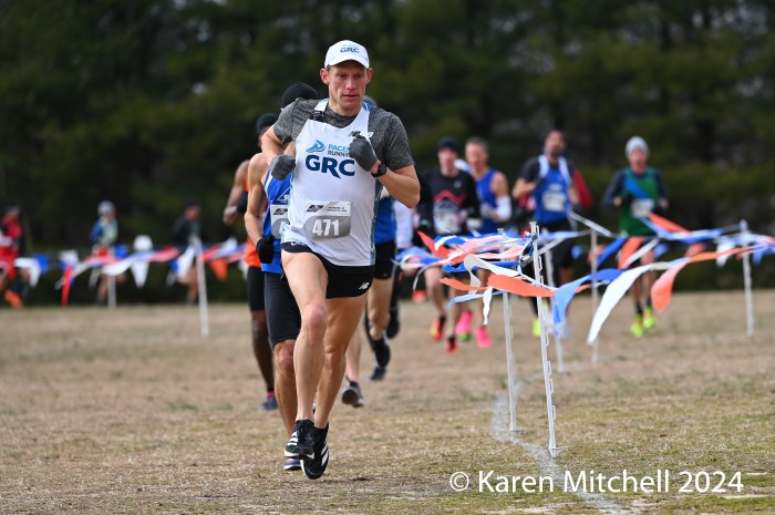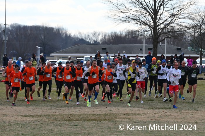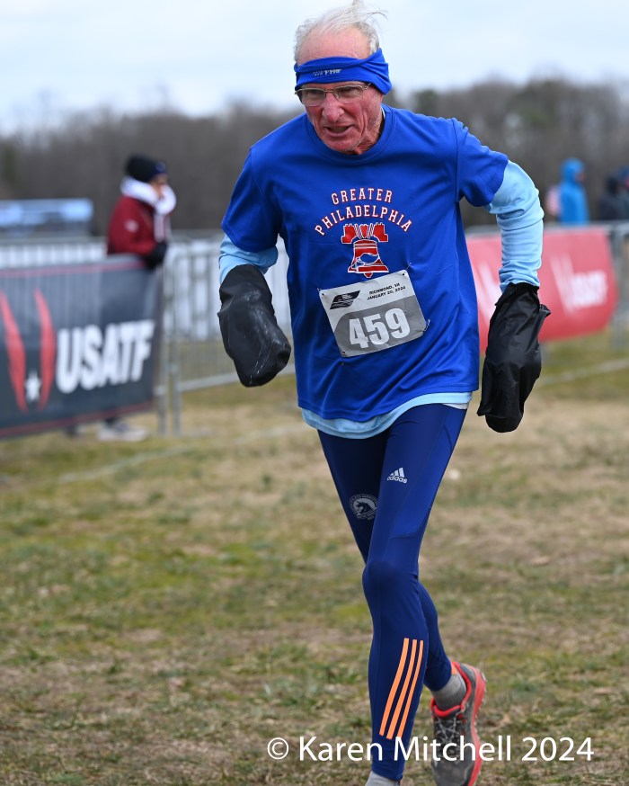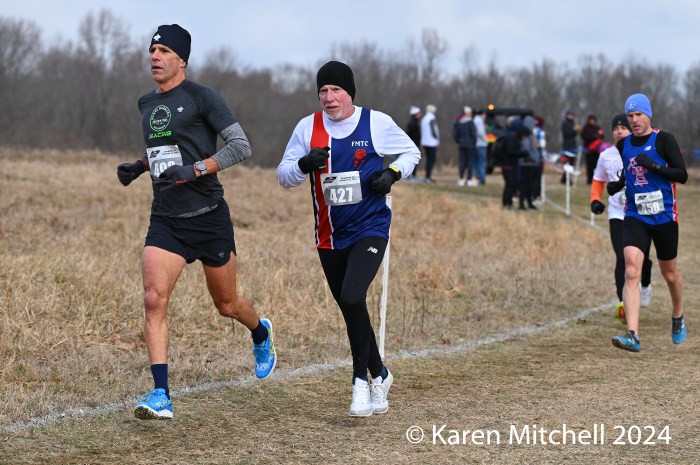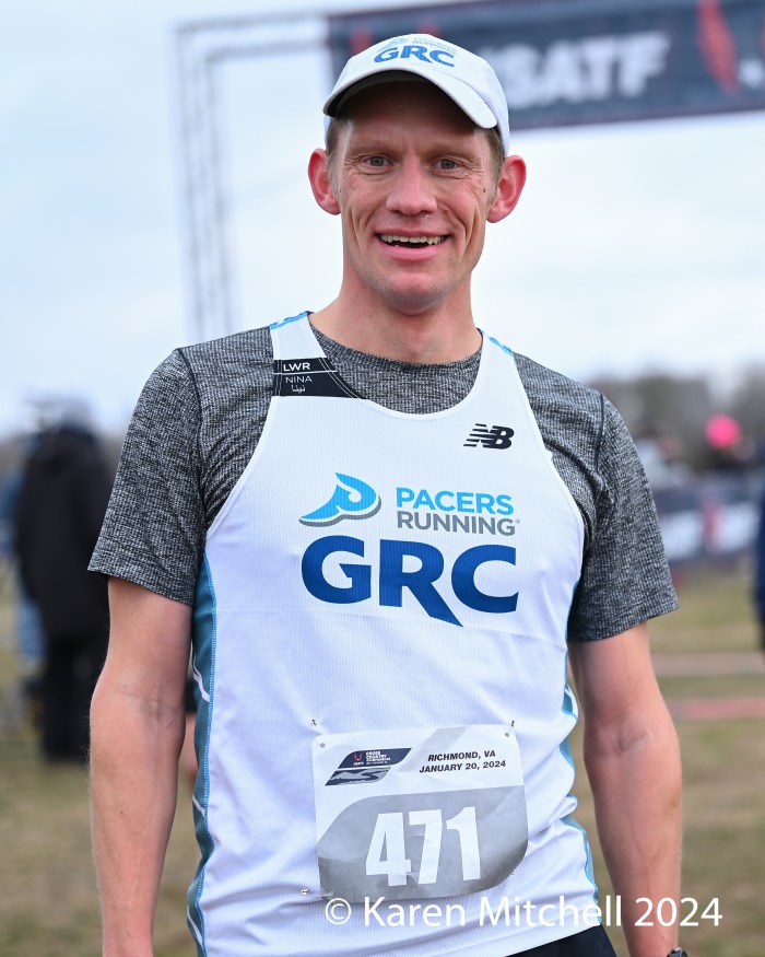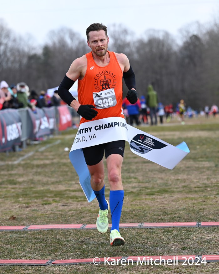 1.20.2024 Mechanicsville, VA, 2024 USATF National Cross Country Championships—Forest Braden of Williamsburg, VA and the Colonial Runners Club took charge on the long, straight start at Pole Green Park in Mechanicsville, Virginia. Braden, coach at the College of William & Mary, led from start to finish, winning in 25:35. Brian Flynn of the Garden State Track Club ran in second the entire way and finished in 25:52. Braden’s teammate Adam Otstot was third in 26:19. Matthew Barresi of Ragged Mountain Running was fourth in 26:55. David Angell of the Blacksburg Striders was fifth in 27:05.