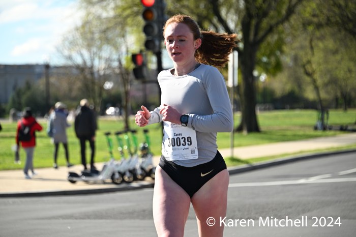 Casey Greenwalt of Washington, DC, as she did in 2023, ran in second place most of the race and then kicked to victory for the second straight year. Her winning time was 18:14. Nilani Duarte of Fairfax, VA, who led most of the race was second in 18:17. 14-year-old Sita Lamartin of Alexandria, VA was third in 19:23.