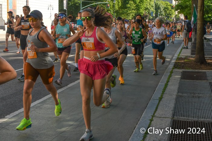 The 52nd running of the Mastercard New York Mini 10k had 9,688 finishers. The name “mini” comes from the mini-skirt, popular when the race started in 1970’s (not mini, as shorter than the marathon, half-marathon etc.). The race started on Central Park West at 89th Street and entered Central Park at 72nd street and circled the park, with a nice sunny spot for photos on the 72nd street transverse.