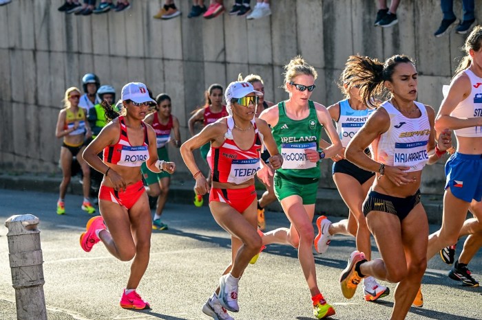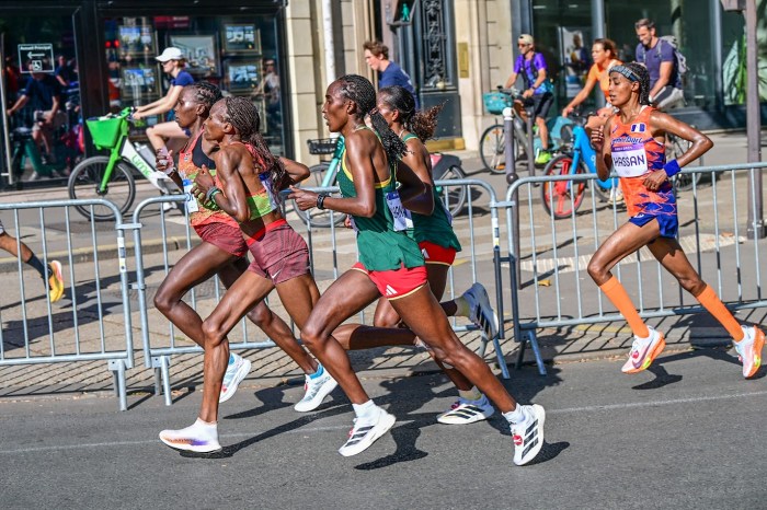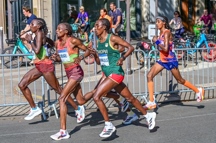 As the race passed the Eiffel Tower, five women were in the front at 40km. As mentioned, it came down to an all-out sprint between Hassan and Assefa. Hellen Obiri, who won both Boston and New York Marathons in 2023, and repeated as Boston champ in 2024, was third in 2:23:10. Sharon Lokedi of Kenya, the 2022 New York City Marathon champ was fourth in 2:23:14, and like Tola, she was added to her Kenyan team late. Amane Beriso Shankule of Ethiopia, the 2023 Budapest World Athletics Championships winner, was fifth in 2:23:57.