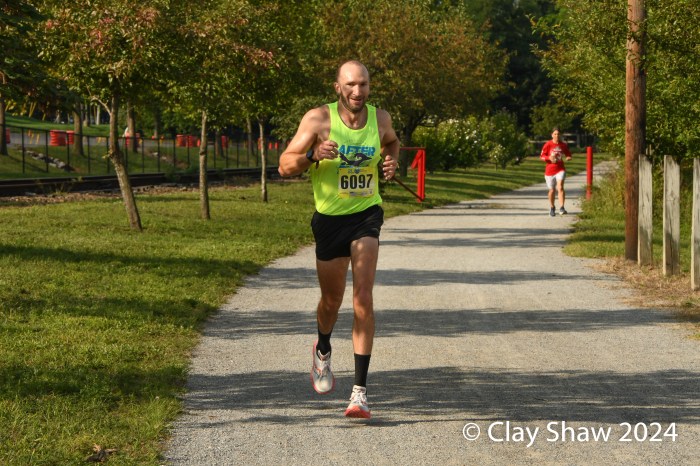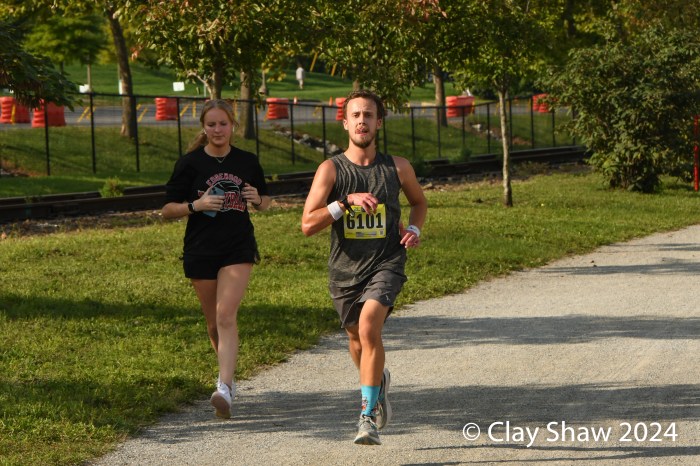 Griffen Ridler of Manchester was alone in nature as he strode through the Howard Tunnel. Ridler won in 56:06.