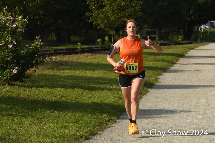 Dellas Edmisten III of York was fourth overall in 1:05:41. The young woman in the photo was just out for her workout.