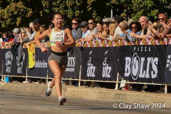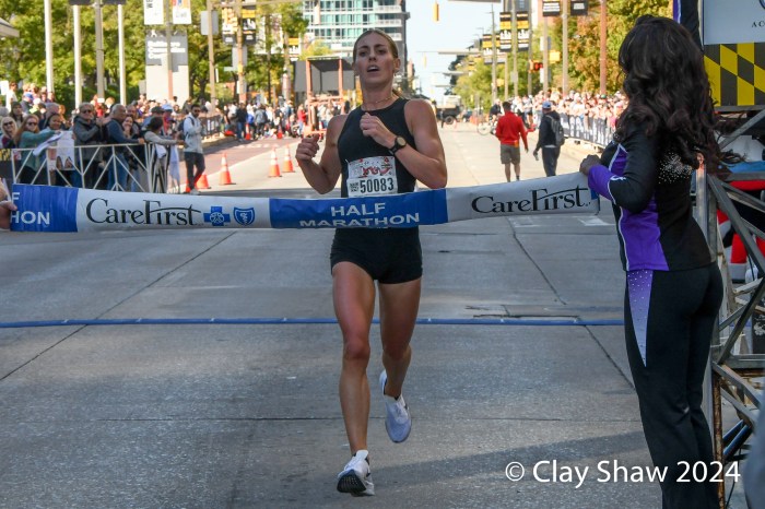 Baltimore, MD, October 19, 2024—Esther Seeland of State College, PA won the Care First Half Marathon by four minutes, running a 1:17:10. Seeland ran for Messiah University and the University of Virginia. Emmy Beyer of Ellicott City, MD was second in 1:21:52. Jennifer Stephenson of Baltimore was third in 1:22:18.