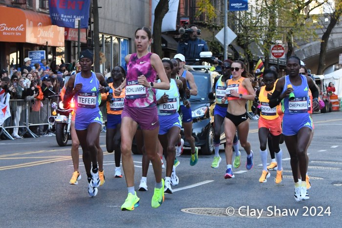 Abdi Nageeye of Netherlands pulled away on the road north to the finish line to win by six seconds in 2:07:39. Nageeye said afterwards “this is my day.” Nageeye added that he knew the course and said “he had to think like a cyclist and survive the hills, and then sprint to win.” Evans Chebet of Kenya, the 2022 NYC Marathon champion running his 30th marathon, was second in 2:07:45. 2021 NYC Marathon champion Albert Korir was third in 2:08:00. Tamirat Tola of Ethiopia, the 2023 NYC Marathon and 2024 Paris Olympic Marathon champion, was fourth in 2:08:12. Geoffrey Kamworor of Kenya, the 2017 and 2019 NYC Marathon winner, was fifth in 2:08:50.