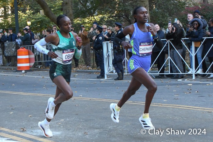 New York, NY, November 3, 2024—Sheila Chepkirui of Kenya and Abdi Nageeye of Netherlands won the 53rd TCS New York City Marathons in nearly the same place and manner. Both athletes were racing another strong competitor in the final mile of the marathon on 59th Street and surges were made on the road back into Central Park.