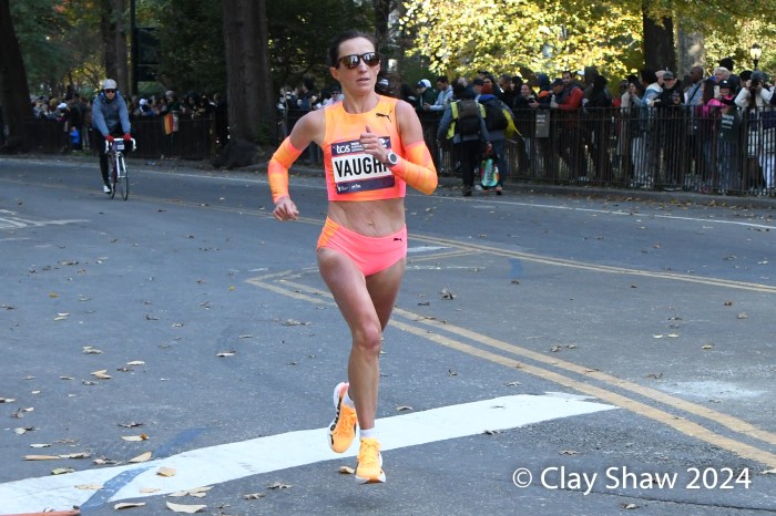 Sixth and first American was Sara Vaughn of Boulder in 2:26:56. Vaughn had planned on racing Chicago and was wearing a mask at the Chicago Marathon press conference. She dropped out of Chicago early and asked New York for an entry. Vaughn felt good, even led for a bit, as she ran with the big pack much of the way. When the pack had dwindled to just a few, she was the only American left, and finished well. USA runners Jessica McClain of Phoenix who was eighth in 2:27:19 and Kellyn Taylor of Flagstaff who was tenth in 2:27:59 had solid races to place in the top ten. American fan favorite Des Linden finished 11th and 2nd master in 2:29:32.