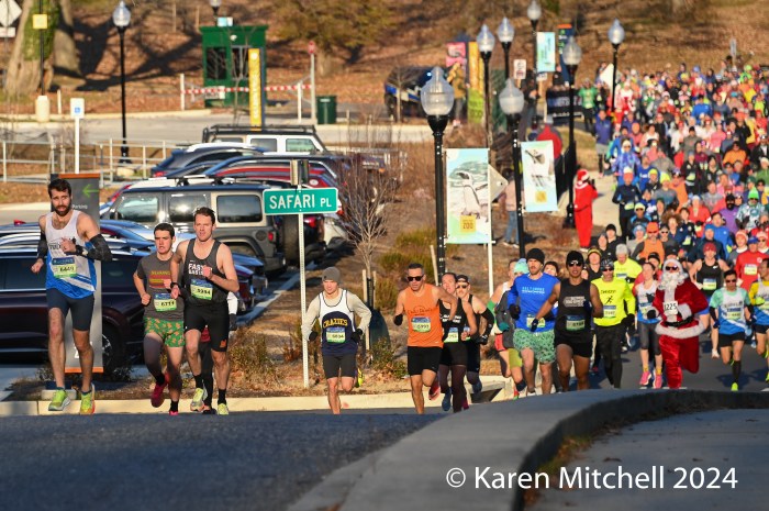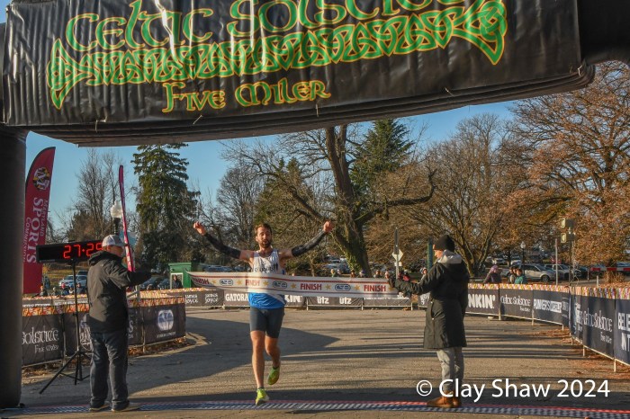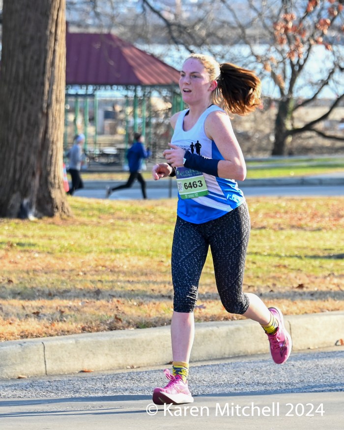 12.14.24 Baltimore, MD; 25th Celtic Solstice 5 Miler—Hannah Betman of Baltimore won the Celtic Solstice 5 Miler for the third time. Her winning time of 28:52 was only bettered by four men. She also won in 2021 and 2023. Betman recently ran the New York City Marathon in 2:44:43.