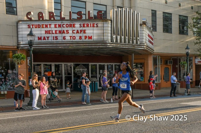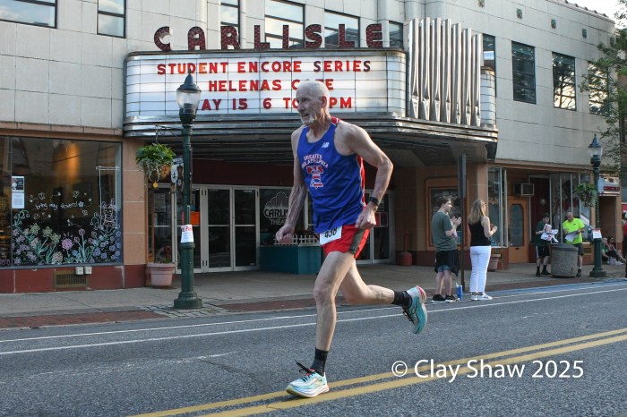 5.15.25 Carlisle, PA—I was rather reluctant to agree to photograph this event, but pleasantly surprised. The Carlisle Downtown Mile is a straight west to east trek on West High Street in Carlisle. From its start at a carwash on the far edge of town, the mile passes Dickinson College and finishes in Carlisle’s cool downtown, passing the theatre, which provided a cool background for many of my photos. In my young glory days as a runner, I had some great races in Carlisle at the Shaffer Brothers Half Marathon and the Jim Thorpe Marathon. Sadly, these races went away well before 2000. It was nice to come back and see Carlisle.