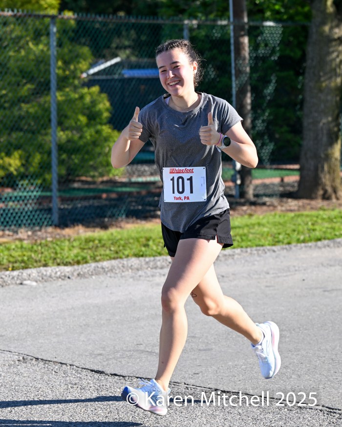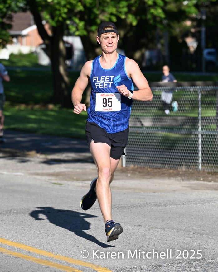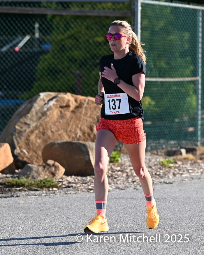 5.26.25 York, PA—Kelly Rose of York won the Gold Star Memorial 5K in York in 19:27, winning by over 2 minutes. Rose won the Harrisburg Half-Marathon in September 2024.